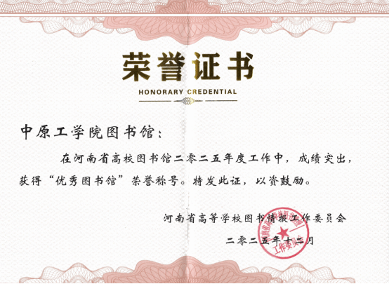 12月9日,河南省高等学校图书情报工作委员会正式公布2025年度优秀图书馆及优秀图书馆员评选结果,我校图书馆荣膺“河南省高等学校优秀图书馆”称号,田国环、李培琼、冀枫、李杰、王晓美五位教师获评“河南省高等学校优秀图书馆员”,双重荣誉的背后,是学校图书情报事业高质量发展的坚实步伐。