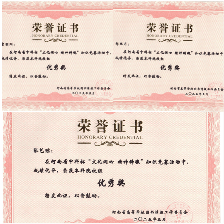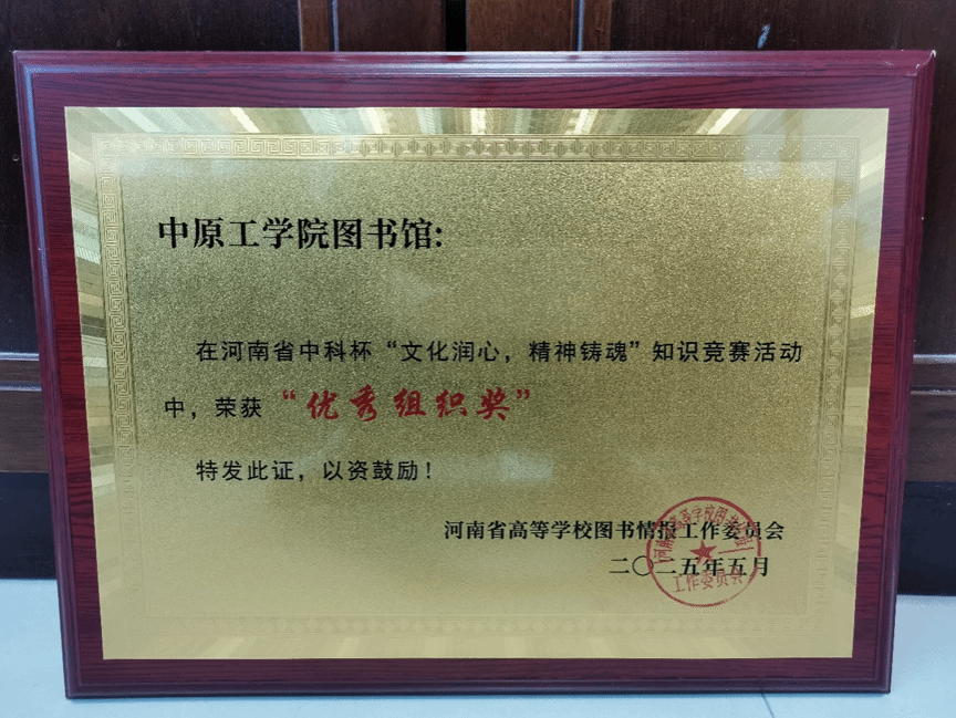 河南省中科杯“文化润心 精神铸魂”大学生知识竞赛在河南牧业经济学院圆满落幕。中原工学院图书馆在河南省中科杯“文化润心精神铸魂”知识竞赛中荣获佳绩。中原工学院图书馆获得“优秀组织奖”,参赛选手祖欣悦在决赛中以优秀的知识储备和出色的现场表现,获得二等奖;贺明阳、郑丝月、张艺琼三名选手分别获得优秀奖。